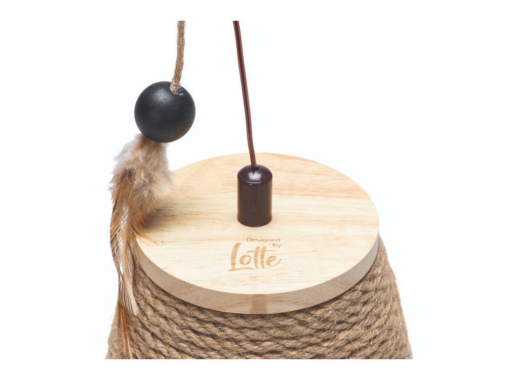 Mae od Designed by Lotte je jednoduše perfektní hračka pro Vaši kočku. Nabízí Vašemu mazlíčkovi různé herní prvky, které se postarají o hodiny zábavy. Škrabací část zajistí hravou péči o drápky a přispěje tak k ochraně Vašeho nábytku. Zábavný kývací efekt kočku povzbuzuje k další herní aktivitě. Třešničkou na dortu je integrované škádlítko s pírky a dřevěnou perlou. S Mae dopřejete své kočce mnoho veselých a hravých chvil.