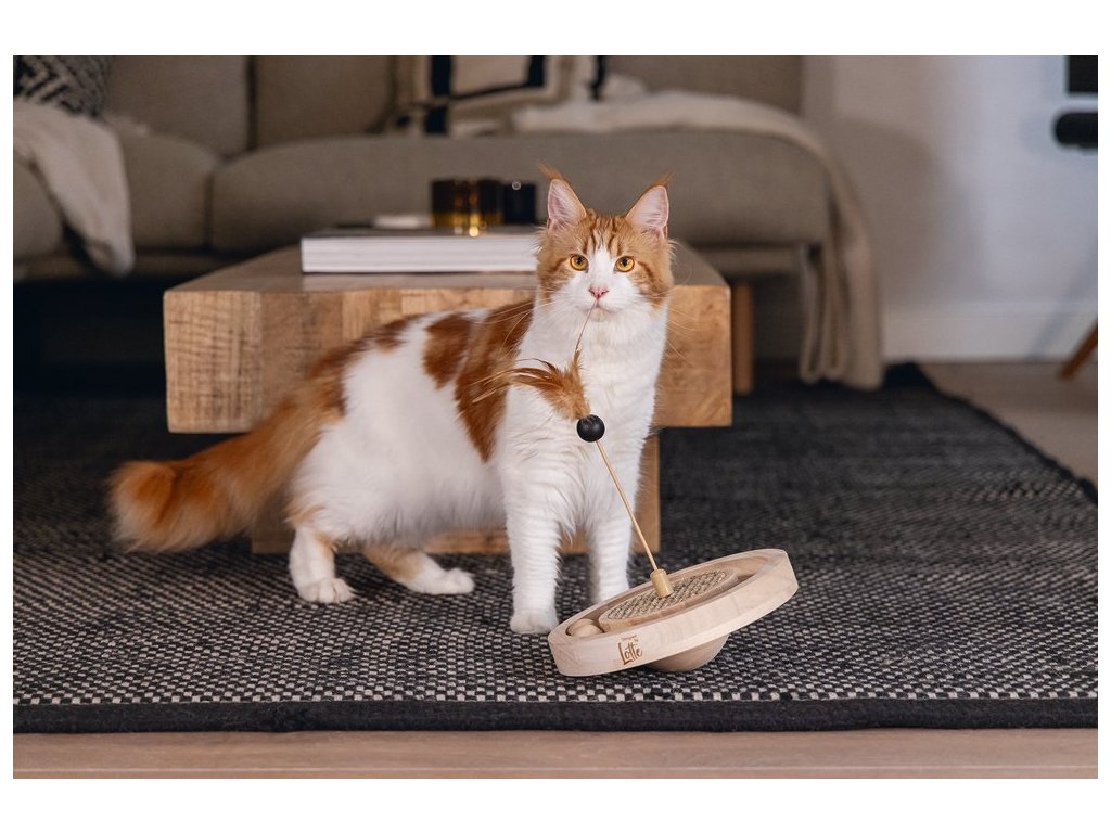 Hračka, škrabadlo, přírodní vzhled a kývací efekt? Toto všechno nabízí Winni - hračka pro kočky od Designed by Lotte. Je vyrobená z kaučukovníku, a tak bude vypadat skvěle ve Vašem interiéru. Díky různým herním prvkům bude Vaše kočka extra motivovaná ke hře. Hračka disponuje sisalovou škrabací podložkou, kterou může Vaše kočka hravou formou používat k péči o své drápky. Uprostřed najdete škádlítko s dřevěnou kuličkou a pírky, a dále koulodráhu s dalšími 2 dřevěnými koulemi. Jakmile se Váš mazlíček dotkne těchto herních prvků svými tlapkami či čumáčkem, hračka se díky svému kulatému dřevěnému dnu začne kývat. Tento kývací efekt motivuje Vaši kočku k další a další hře.