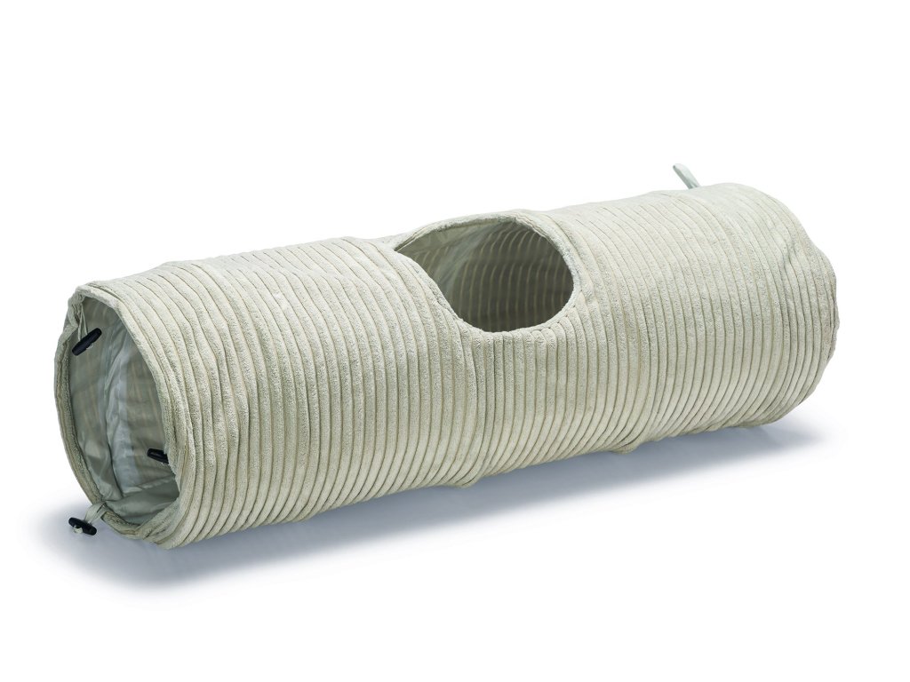 Elegantní tunel zajistí hodiny zábavy. Vaše kočka se bude ráda v tunelu schovávat nebo jím probíhat. Tunel má navíc jeden otvor uprostřed. Zabudované kovové kruhy udržují tunel otevřený a napnutý. Je opatřen krásnou, trendy žebrovanou látkou. Díky tomu se perfektně hodí k nejnovějším trendům bydlení a stane se krásným doplňkem Vašeho interiéru. Už si Váš chlupatý mazlíček dohrál? Pak můžete tunel snadno složit naplocho a uložit pro úsporu místa.