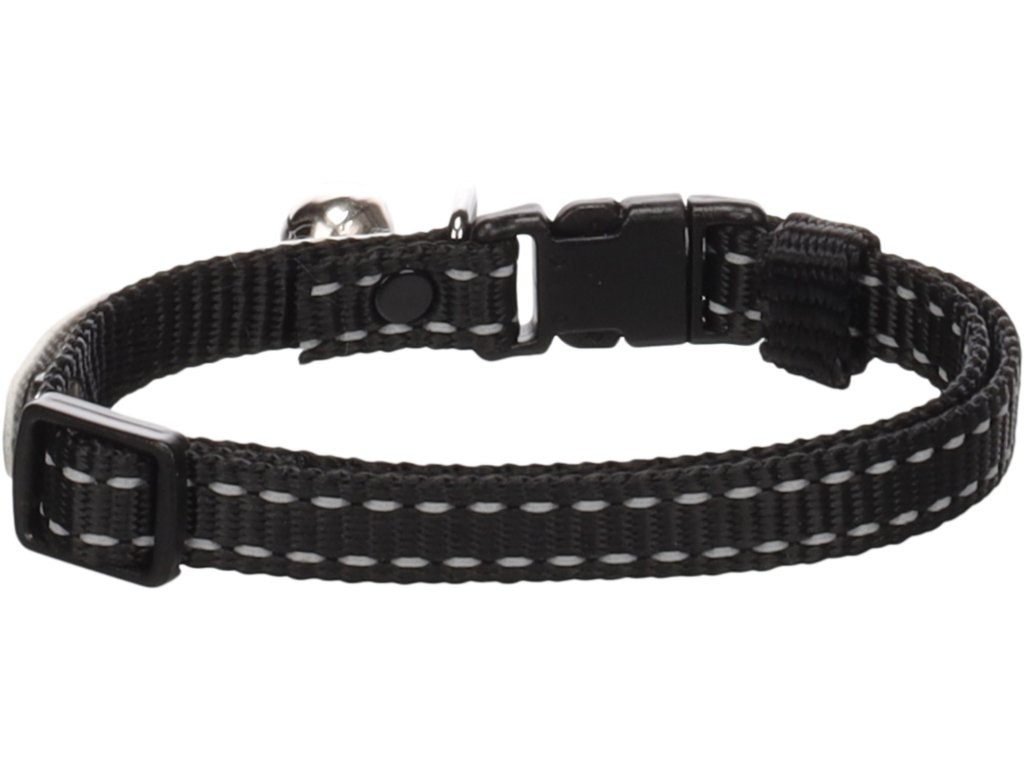 S tímto cool černým obojkem bude Vaše kočka hvězdou nejen na výstavě! Vyrobeno z nylonu, opatřeno reflexními proužky pro větší bezpečnost, rolničkou a popisovatelným štítkem. Obojek disponuje pohodlnou zacvakávací přezkou s bezpečnostní funkcí.