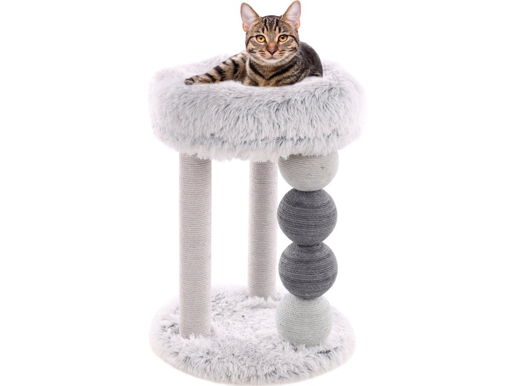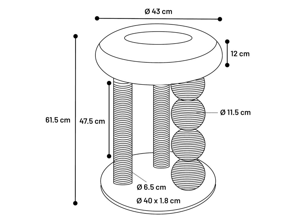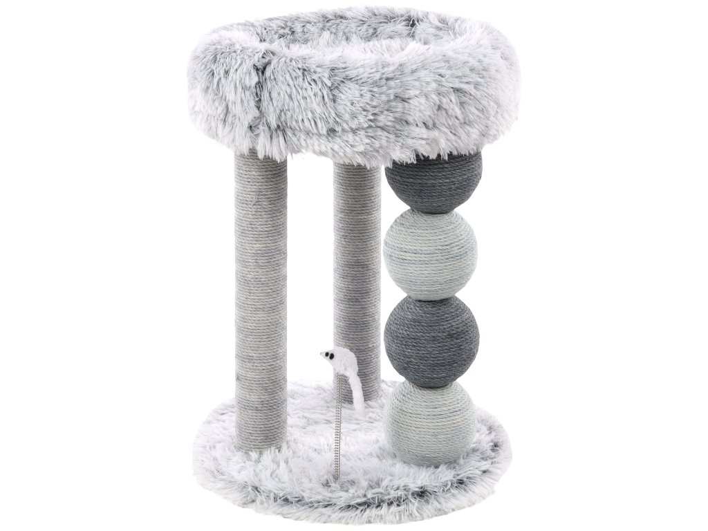 Toto škrabadlo pro kočky není jen hřištěm pro Vašeho kočičího kamaráda, ale představuje také krásný doplněk Vašeho interiéru. S plyšem 320 g/m2, jutovým provazem na škrábání a zábavnou hračkou, nabízí potřebnou stimulaci. Odpočinková plocha je příjemně polstrovaná.