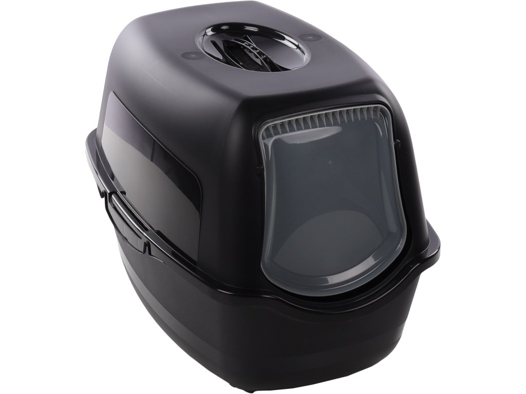 Recyklovatelná kočičí toaleta vyrobena z 98 % z recyklovaného plastu. Dodává se s vyměnitelným uhlíkovým filtrem, který pohlcuje nepříjemné pachy. Snadno se přemisťuje pomocí rukojeti a díky zaobleným rohům se snadno čistí. Toaleta má odnímatelné víko s výklopnými dvířky.