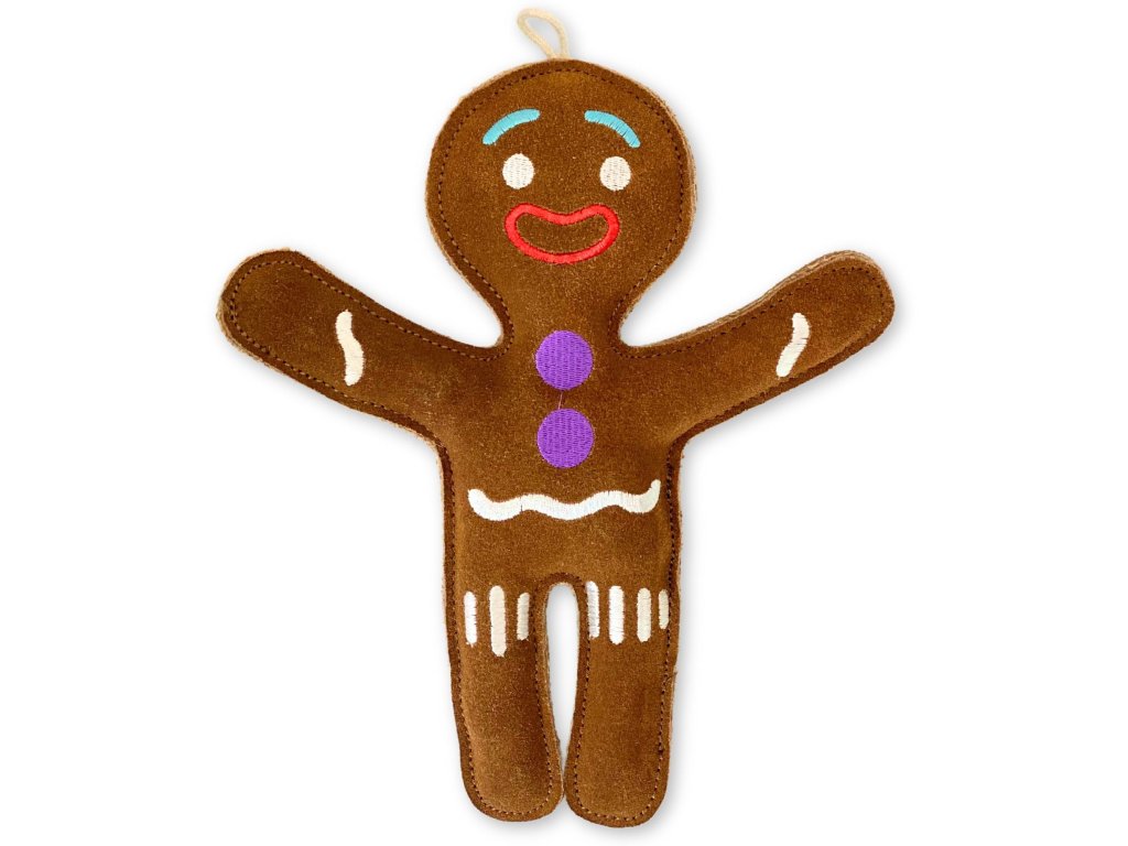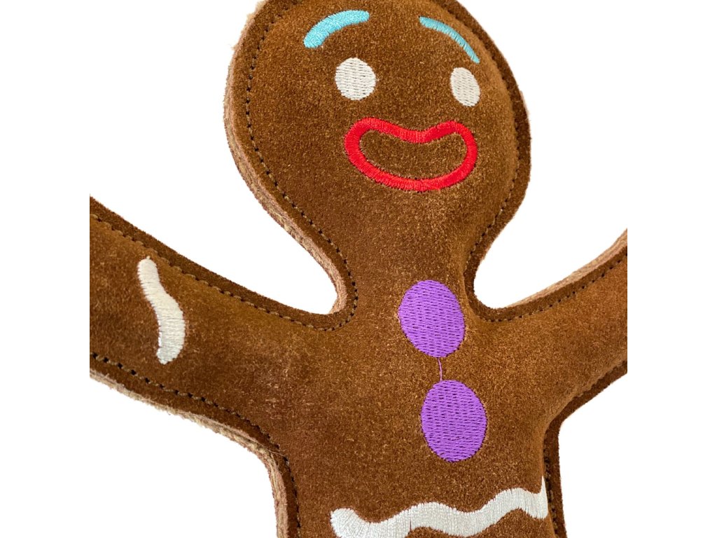 Pan Perníček je ekologická hračka vyrobená pouze z přírodních materiálů, bez použití jakékoliv sloučeniny, která by se při žvýkání uvolňovala a mohla psovi nějak uškodit. Pravá broušená kůže je pro pejsky velmi voňavá a lákavá. Věřte, že se Váš parťák okamžitě zamiluje.... Hračka je vyrobena z pravé broušené buvolí kůže podšité jutovou látkou, vyplněna přírodními kokosovými vlákny a nevydává žádný zvuk.