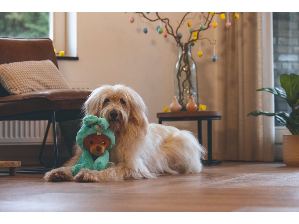 Už jste někdy viděli medvěda v kostýmu velikonočního zajíčka? Tady ho máte! Beeztees medvídek Barry je zkrátka ta nejroztomilejší hračka pro Vašeho čtyřnohého parťáka. Barry je vyroben z úžasně měkkého plyše, takže se k němu Váš pejsek může i přitulit.