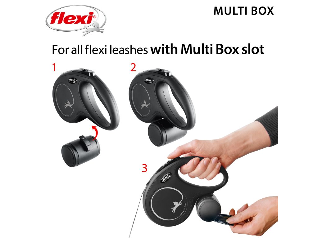 Praktický doplněk k vodítkům flexi®, který využijete pro psí pamlsky nebo sáčky na exkrementy. Jednoduchá instalace zasunutím na slot na vodítku.