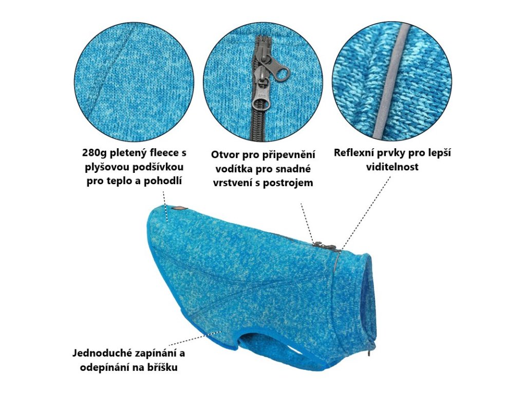 Je libo svetr? Představujeme svetr pro psy Kurgo® Core, který Vašemu psímu parťákovi zajistí pohodlí, aniž by ho omezoval v pohybu. Je vyroben z pleteného fleecu s gramáží 280 g, což je o něco více, než bývá obvyklé u podobných výrobků, a tak skvěle poslouží jako samostatná vrstva oblečení v chladném počasí nebo jako další vrstva, když začne skutečně mrznout. Dvoucestný zip na horní straně nabízí snadný přístup k upevňovacímu bodu pro vodítko. Svetr tedy lze pohodlně nosit v kombinaci s obojkem i postrojem. Díky zipu v oblasti krku a suchým zipům v oblasti hrudníku doladíte vše tak, aby nikde nic netlačilo. Kurgo® Core představuje univerzální svetr, který je ideální pro každého psa a na každé dobrodružství.