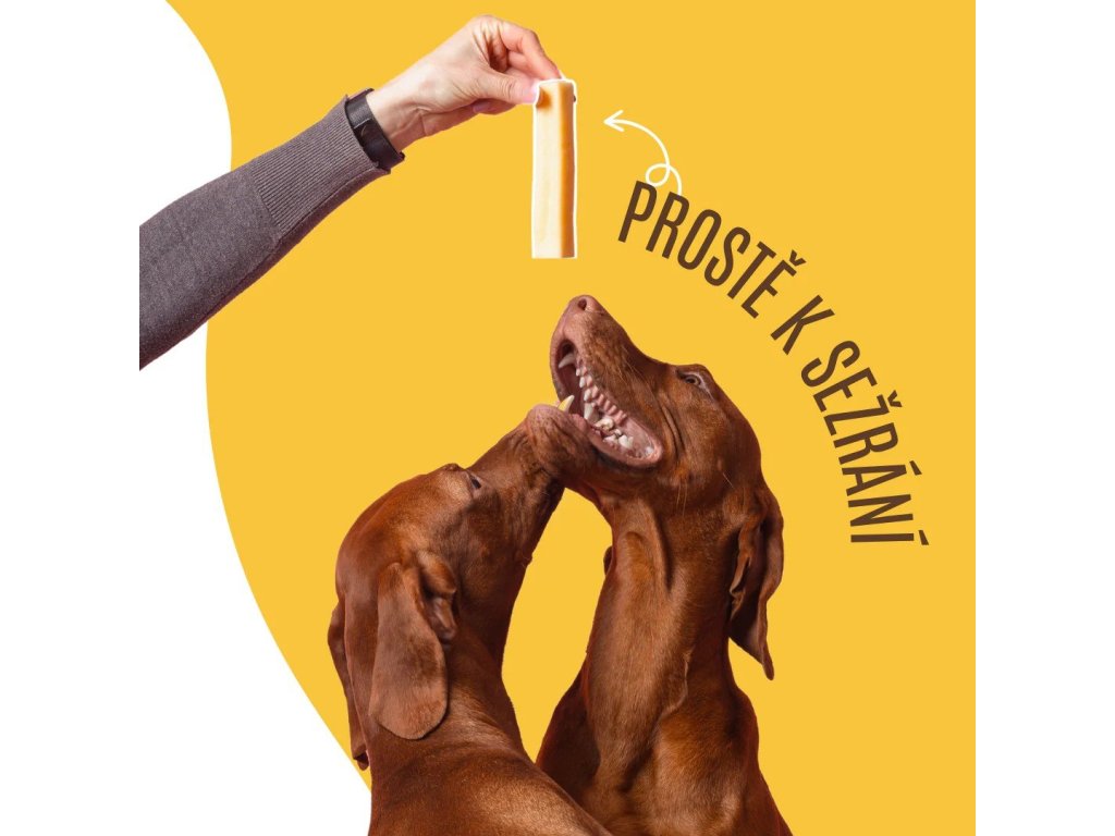 Hledáte bezpečný, chutný a odolný pamlsek, který vašemu pejskovi vydrží? Himalájská tyčka od Dogsie je originální žvýkací dobrota inspirovaná tradiční recepturou z hor – vyráběná z kvalitního belgického mléka, bez chemie, barviv a konzervantů. Díky pomalému sušení po dobu až 3 měsíců získává tyčka svou unikátní tvrdost a dlouhou trvanlivost. Žvýkáním a sliněním se postupně obrušuje a měkne, takže si ji pejsek bezpečně užije a zároveň si čistí zuby a dásně.