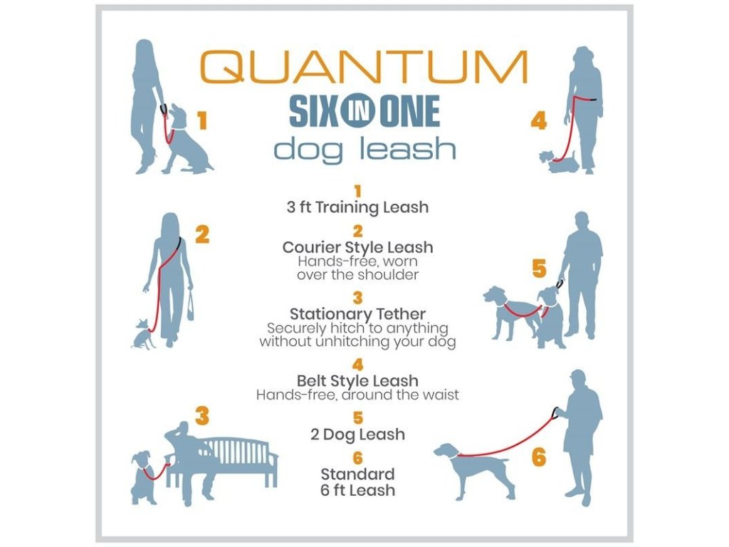 Vodítko Quantum - oceňované vodítko pro psy od společnosti Kurgo - má vše, co byste od vodítka očekávali, ale pravděpodobně objevíte i několik dalších výhod.... Toto vodítko nabízí až 6 různých způsobů použití, takže ať už se chystáte kamkoli, určitě pro něj najdete využití a stane se Vaším skvělým pomocníkem. Nastavitelnou délku od 91 do 182 cm oceníte jak při výcviku, tak při sportu. A dokonce Vám vůbec nemusí překážet v rukou - dvě možnosti využití jsou totiž handsfree.