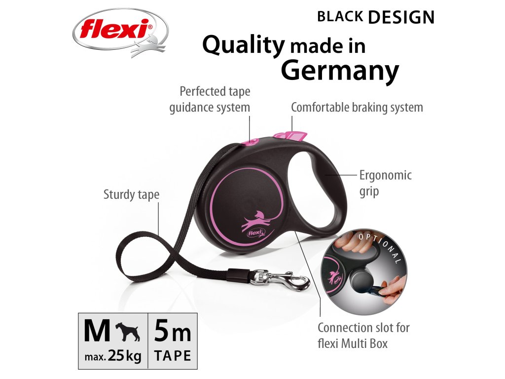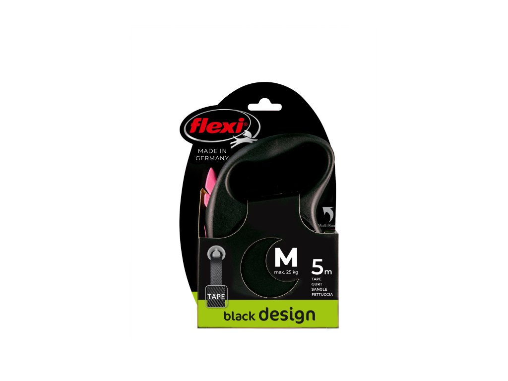 Flexi Vodítko Black Design M pásek 5m černo-růžové