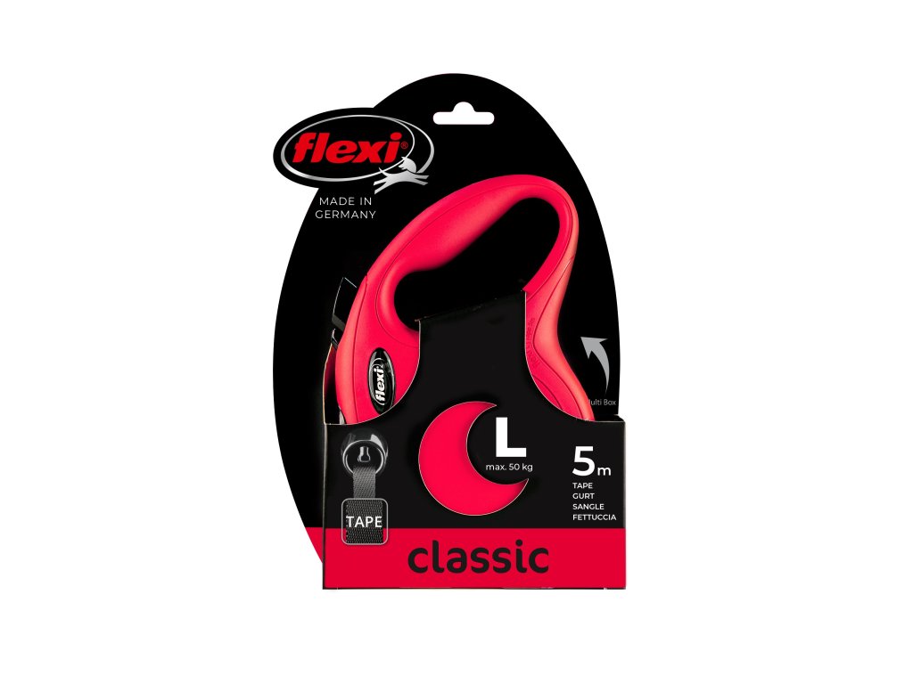 Vodítka flexi® classic nabízí pohodlný úchop, odolný navíjecí systém i kvalitní, bezpečný a intuitivní brzdný systém, který ve zlomku vteřiny zastaví pohyb psa. Pro snadné upevnění vodítka k obojku nebo postroji je vodítko opatřeno chromovanou karabinou. Samozřejmostí je zdokonalený výstup pásku, který zajišťuje manipulaci v libovolném směru bez zasekávání - potvrzeno nesčetnými testy.