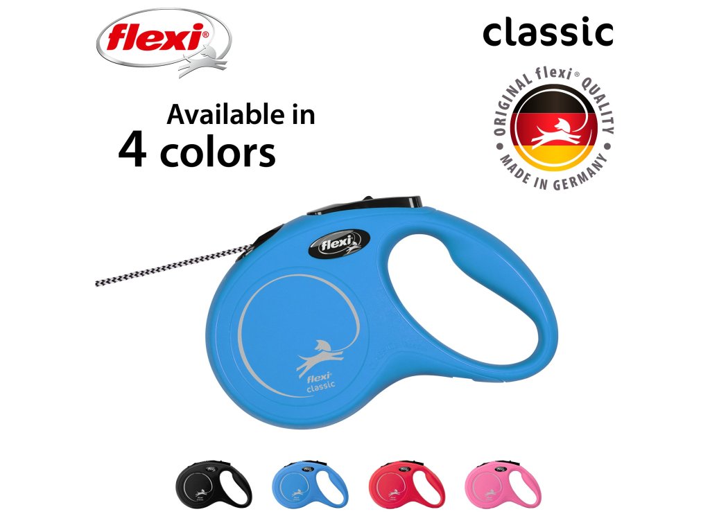 Vodítka flexi® classic nabízí pohodlný úchop, odolný navíjecí systém i kvalitní, bezpečný a intuitivní brzdný systém, který ve zlomku vteřiny zastaví pohyb psa. Pro snadné upevnění vodítka k obojku nebo postroji je vodítko opatřeno chromovanou karabinou. Moderní design lze zároveň kombinovat s praktickými doplňky flexi® Multi Box a flexi® LED osvětlením (kromě velikosti XS).