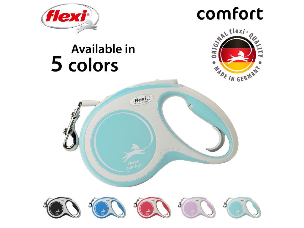 Pohodlné a díky svému dokonale sladěnému designu i unikátní - to je vodítko flexi® comfort, které nabízí Vašemu čtyřnohému příteli vše, co psi milují: pohyb, pohyb a ještě jednou pohyb! Vás jistě potěší extra pohodlná, měkká rukojeť (ve velikosti M a L je navíc nastavitelná) i zdokonalený výstup a vedení pásku všemi směry bez zasekávání. Na každé procházce oceníte i bezpečný a intuitivní brzdný systém, který ve zlomku vteřiny zastaví pohyb pásku. Pro snadné upevnění vodítka k obojku nebo postroji je vodítko opatřeno kvalitní chromovanou karabinou. Kompatibilní s praktickými doplňky flexi® Multi Box a flexi® LED osvětlením (platí pro velikost S, M a L).
