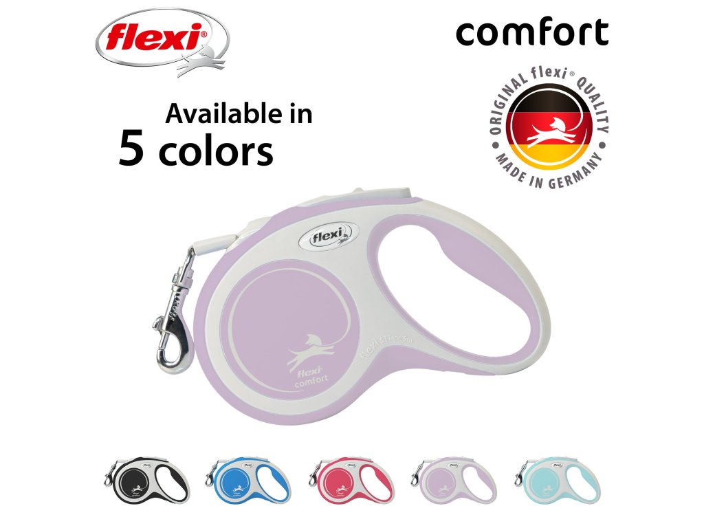 Pohodlné a díky svému dokonale sladěnému designu i unikátní - to je vodítko flexi® comfort, které nabízí Vašemu čtyřnohému příteli vše, co psi milují: pohyb, pohyb a ještě jednou pohyb! Vás jistě potěší extra pohodlná, měkká rukojeť (ve velikosti M a L je navíc nastavitelná) i zdokonalený výstup a vedení pásku všemi směry bez zasekávání. Na každé procházce oceníte i bezpečný a intuitivní brzdný systém, který ve zlomku vteřiny zastaví pohyb pásku. Pro snadné upevnění vodítka k obojku nebo postroji je vodítko opatřeno kvalitní chromovanou karabinou. Kompatibilní s praktickými doplňky flexi® Multi Box a flexi® LED osvětlením (platí pro velikost S, M a L).