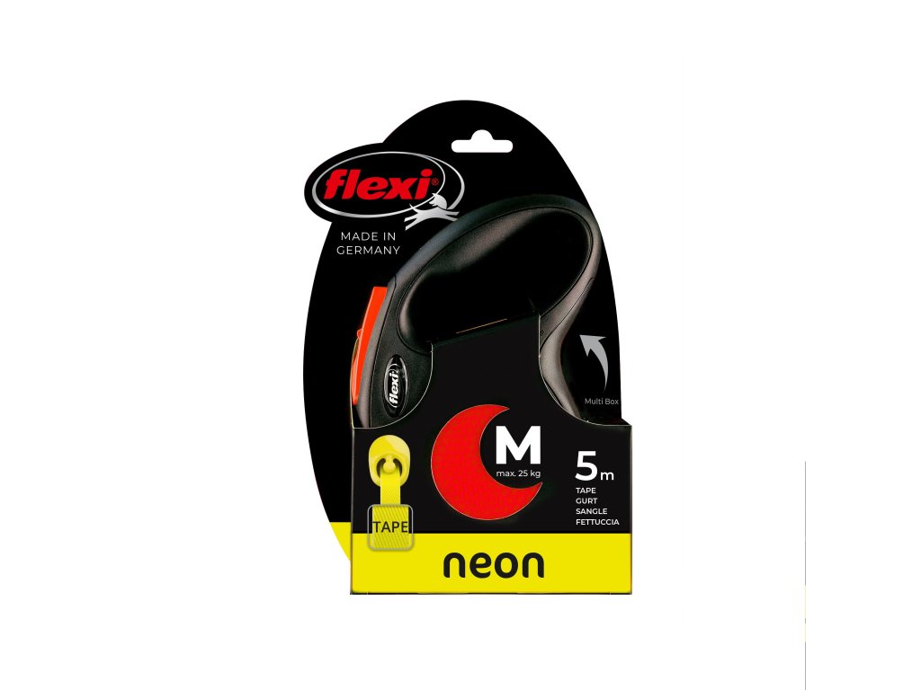 Flexi® Neon zároveň nabízí i nesčetnými testy zdokonalený výstup a vedení pásku všemi směry bez zasekávání. S délkou 5 m poskytuje Vašemu parťákovi potřebnou volnost pohybu.