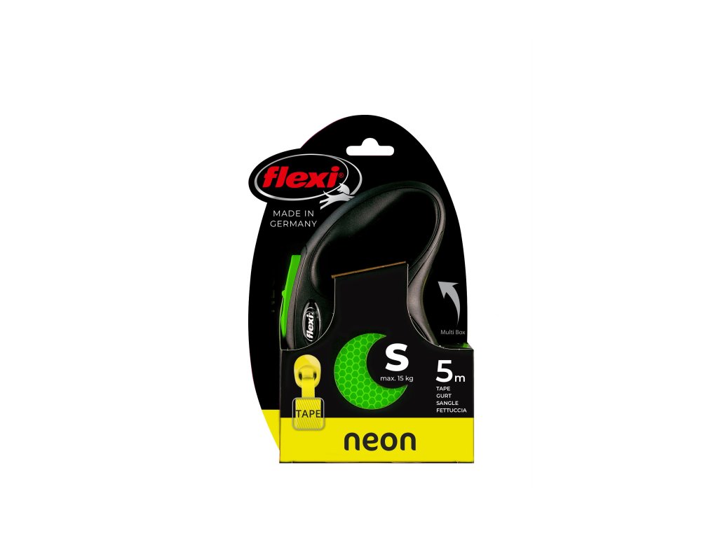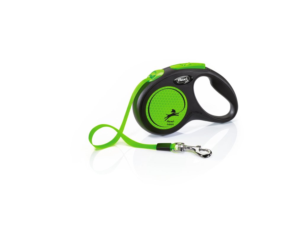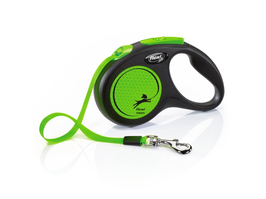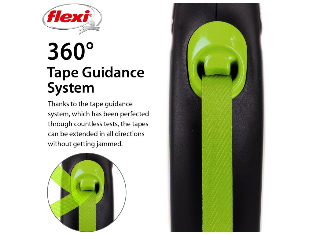 Flexi® Neon zároveň nabízí i nesčetnými testy zdokonalený výstup a vedení pásku všemi směry bez zasekávání. S délkou 5 m poskytuje Vašemu parťákovi potřebnou volnost pohybu.