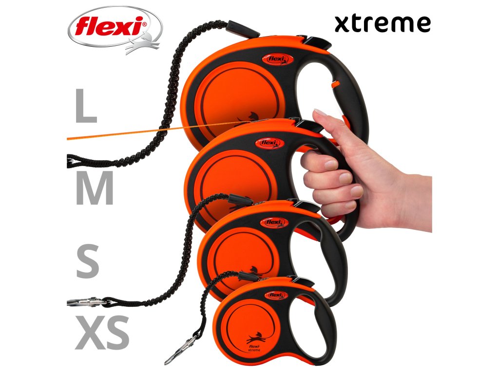 Extrémně odolné vodítko nejen pro milovníky adrenalinu. Ať už je Váš čtyřnohý parťák obzvlášť aktivní nebo vás čekají dobrodružné výzvy, flexi® Xtreme nabízí ještě větší bezpečnost s extrémně odolným páskem flexi® X11 a více pohodlí díky integrovanému tlumiči Soft-Stop. K většímu bezpečí připívá i výrazná barva, která je snadno rozpoznatelná z dálky i za soumraku. Protože čím delší je vodítko, tím důležitější je, aby bylo dobře viditelné. Pro Vaše pohodlí disponuje flexi® Xtreme ve velikostech M a L nastavitelnou rukojetí. Rukojeť lze přizpůsobit velikosti Vaší ruky pro pevný úchop na každé procházce. Samozřejmostí je i nesčetnými testy zdokonalený výstup a vedení pásku všemi směry bez zasekávání.