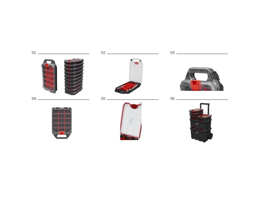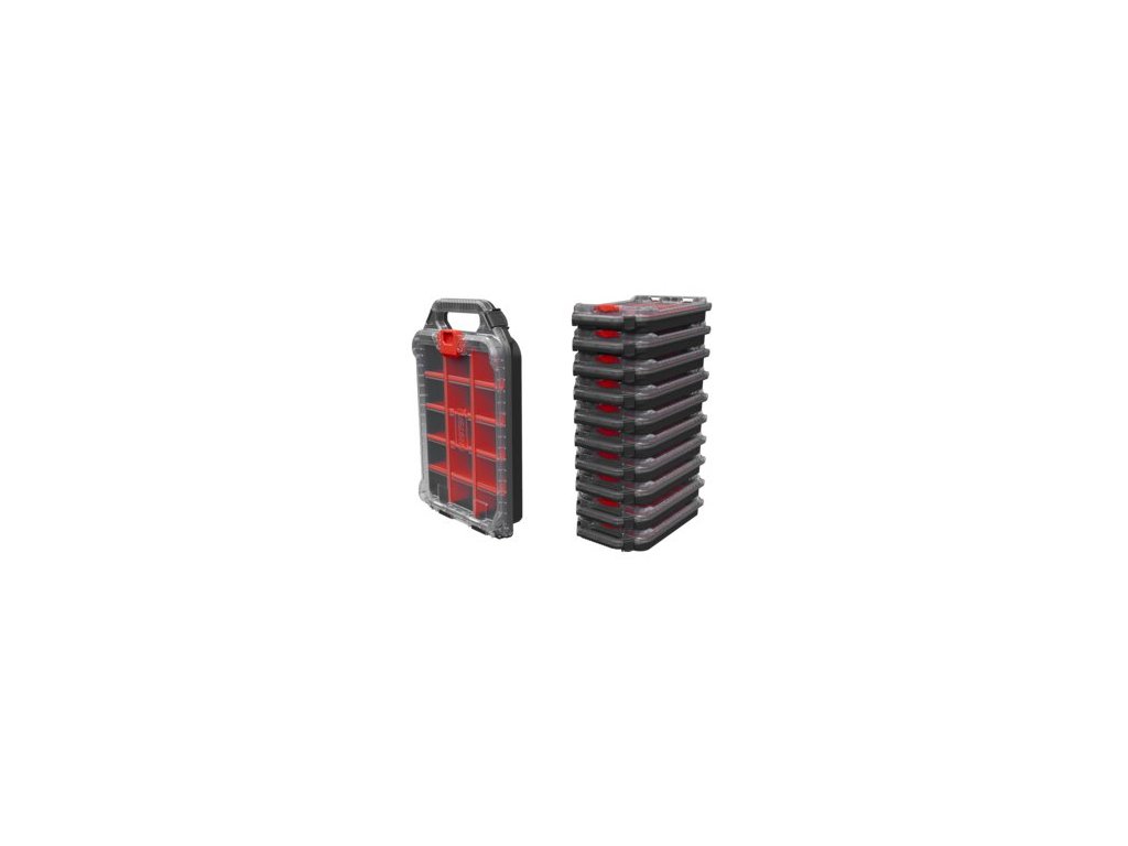 Produkt nabízí až 15 úložných přihrádek - kapacita, kterou byste očekávali od standardního organizéru, a to v designu, který doslova zabere polovinu místa na Vaší pracovní ploše. Ideální pro ukládání a organizaci malých předmětů pro hobby, řemeslné nebo kutilské činnosti. Chytrý stohovatelný design znamená, že můžete přidávat jednotky na sebe, aniž byste zahltili garáž, dílnu, sklep nebo vozidlo. Pohyblivé přepážky Vám umožňují přizpůsobit rozvržení různým potřebám. Průhledné víko umožňuje mít přehled o všech položkách uvnitř na první pohled. Díky velké rukojeti je přenášení Vašich věcí hračkou.