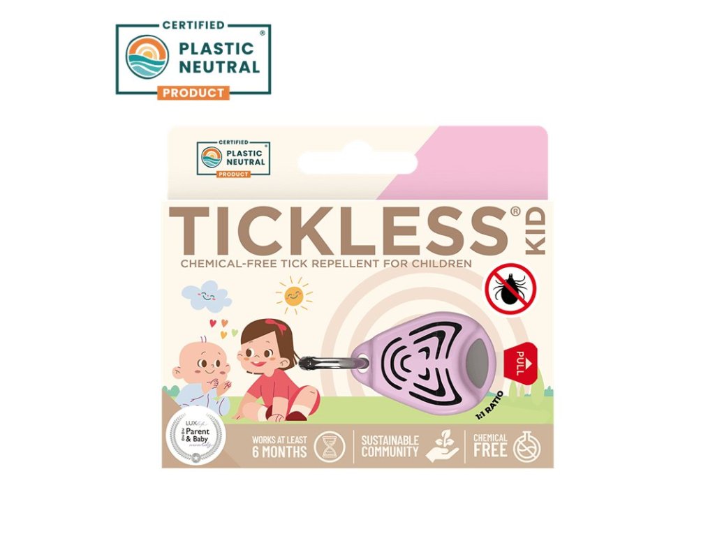 TICKLESS® KID je ideálním řešením proti klíšťatům již od prvních dní dítěte venku. Pro děti, batolata a děti ve věku od 0 do 10 let. Postará se o bezstarostný čas strávený s dětmi v přírodě. Zařízení odpuzuje klíšťata bez použití nebezpečných chemikálií. Jednoduše a bezpečně připevněte zařízení k oblečení dítěte. Po aktivaci odpuzuje klíšťata 6-12 měsíců, což umožní celé Vaší rodině vychutnat si přírodu bez starostí. Je netoxický a nepoužívá ani neuvolňuje žádné chemické látky ani zápachy, takže je bezpečný pro každého.