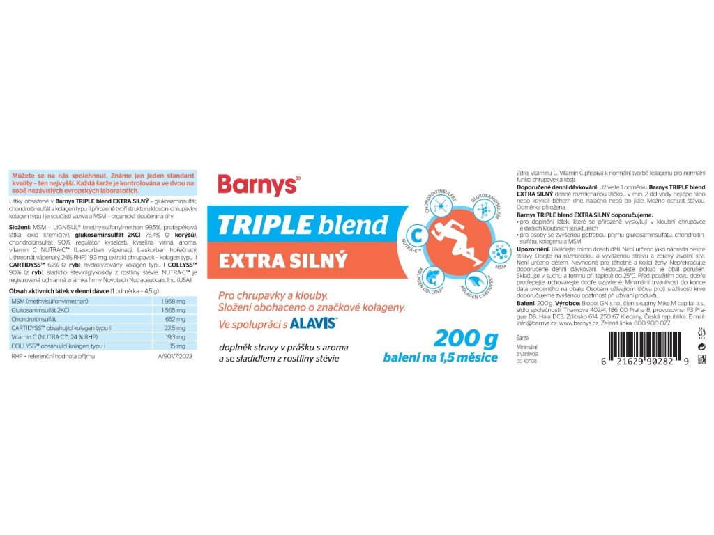 Látky obsažené v doplňku stravy Barny´s TRIPLE Blend EXTRA SILNÝ – glukosaminsulfát, chondroitinsulfát a kolagen typu II tvoří přirozenou strukturu kloubní chrupavky, kolagen typu I je součástí vazů a šlach, MSM je organická sloučenina síry.