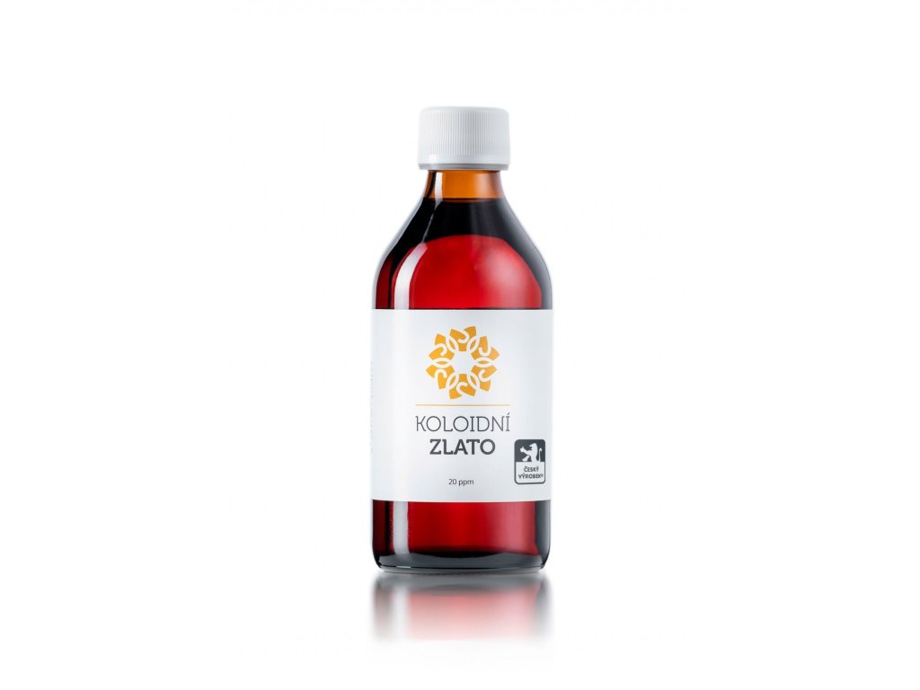 Koloidní zlato je ryzí metalické zlato dispergované (rozptýlené) v destilované vodě. Čistí a regeneruje namáhanou a podrážděnou pleť. Napomáhá ke zklidnění a harmonizaci pokožky. Pro své antioxidační účinky a schopnost přenosu molekul kyslíku přímo do kůže, podporuje obnovu její buněčné struktury. Zvláště vyhledávané pro vyhlazení pokožky a eliminaci vrásek.