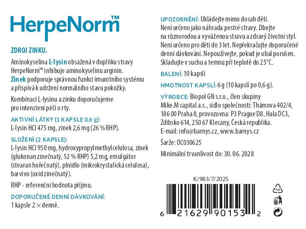 Důvod jeho vysoké efektivity je fakt, že HerpeNorm™ obsahuje zinek, který přispívá k dobré funkci imunitního systému a příznivě ovlivňuje dobrý stav pokožky.